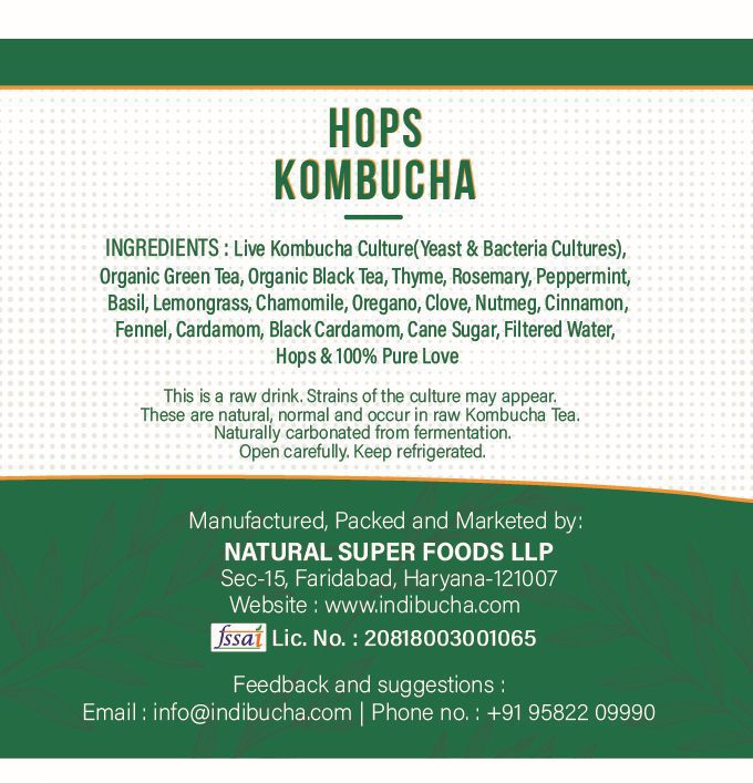 A crisp and refreshing kombucha infused with the bold character of hops, this naturally fermented Herbal Super Tea delivers probiotics, antioxidants, and a smooth, mildly bitter finish. Light, low in sugar, and revitalizing—perfect for digestion, detox, and daily wellness.
