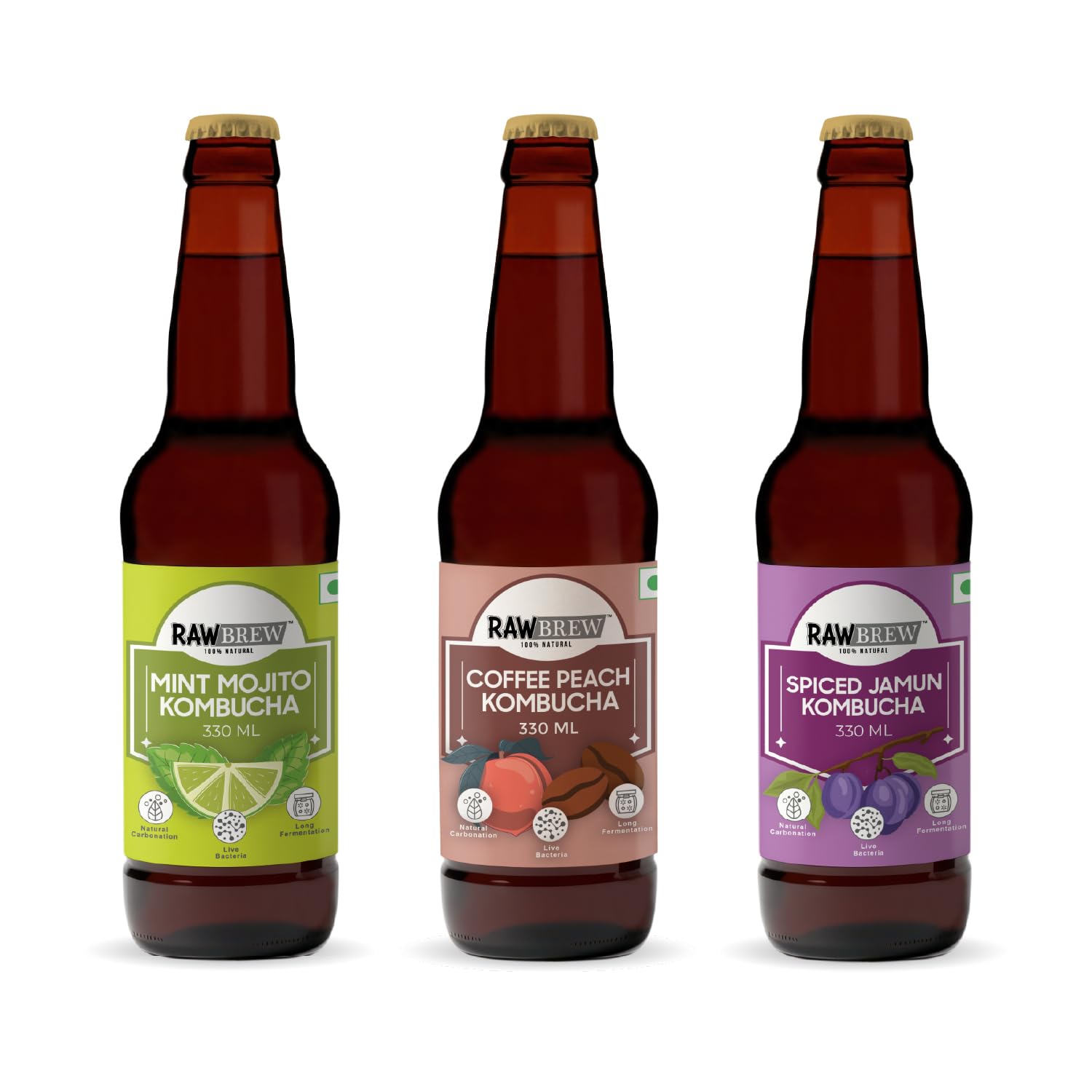 RawBrew Kombucha -12 Pack (330ml) – Mint Mojito, Coffee Peach, Spiced Jamun
